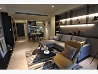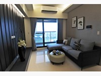 首先來看到最大坪數的A1這間規劃3房2廳2衛2陽台,一進門有個玄關設計,可以看到採光非常好,陽光從高雄厝陽台進來但是不會直射進室內,客、餐廳聯通配上透明落地窗,視野通透。黑灰色基調設計配上米白色牆面,加上灑進來的暖光,簡約的設計讓人很放鬆。