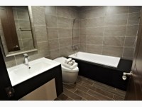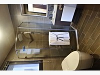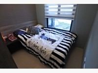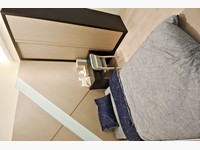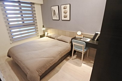 臥室B相對小了些,不過放單人床、書桌、衣櫃之後空間還是綽綽有餘,需注意的是採光從工作陽台近來,之後曬衣服可能會有影響;另外共用衛浴也有開窗,採三件式,乾濕分離沒有浴缸。