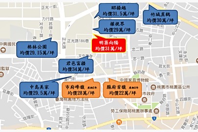 桃園市桃園區中路特區周邊綠地多且規劃為純住宅區,加上鄰近桃園市政府及交流道的特點,讓該重劃區一直是桃園房市的亮點之一。而明築建設的首宗建案「明築向陽」即坐落在中路重劃區,基地面6500坪向陽公園,享有永久棟距景觀,強調具鑽石級綠建築候選標章,擁有節能及健康的生活環境。