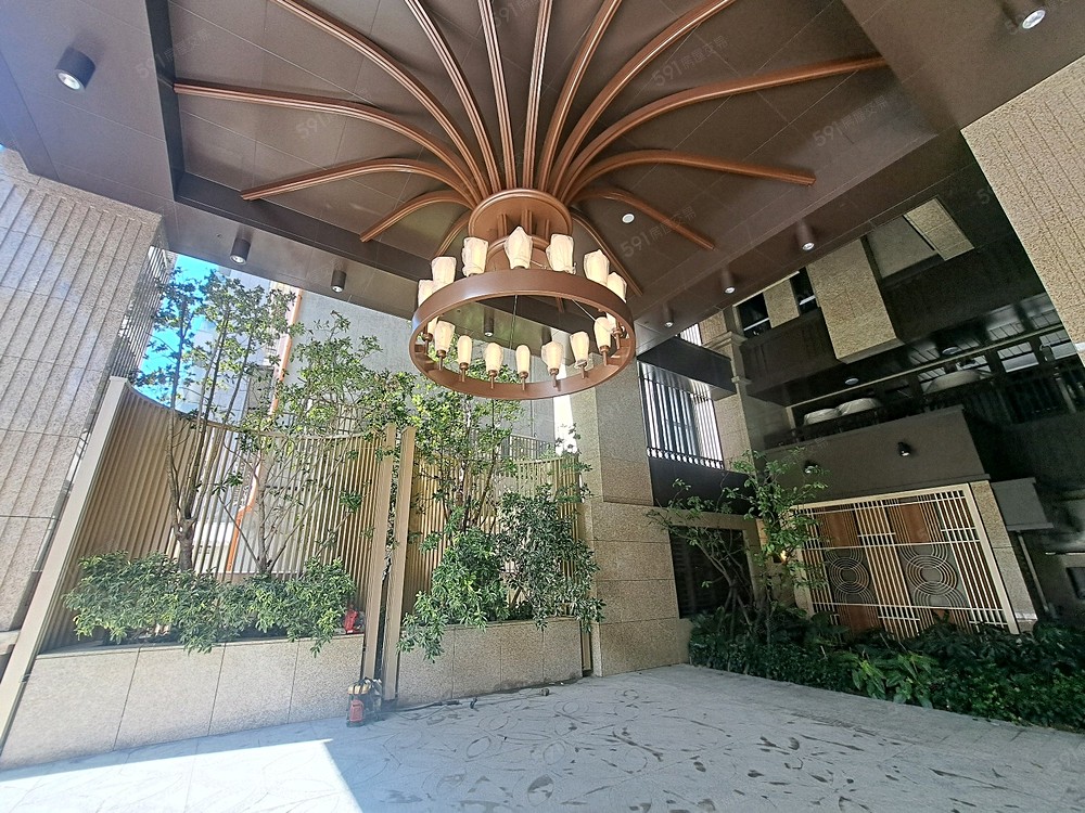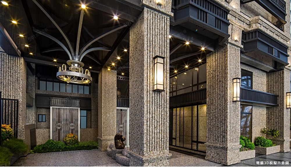 規劃挑高7米的半戶外迎賓門廳,並以大型吊燈展現豪宅氣勢,