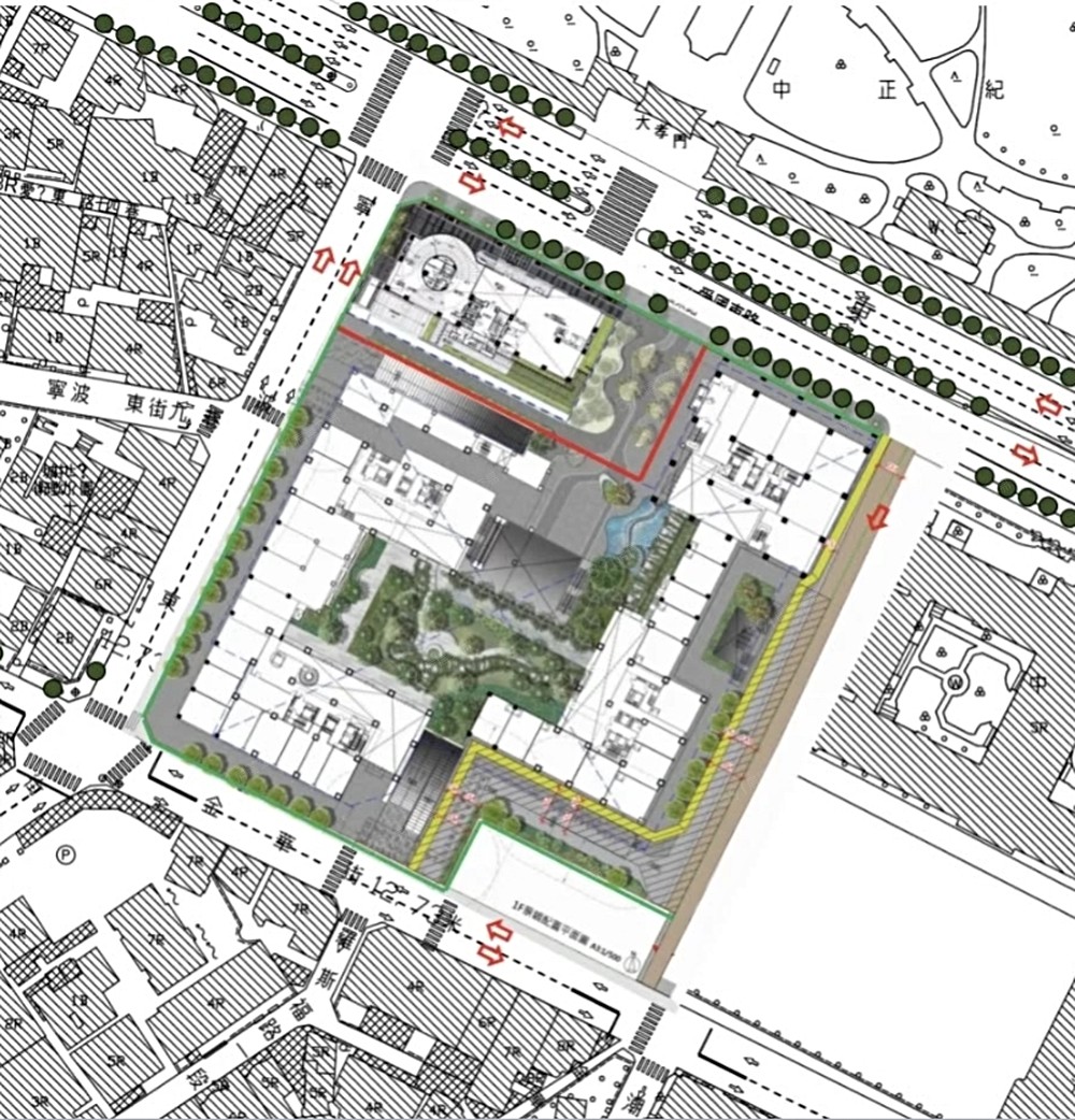 改建後區域指標建案,三圓建設提升結構為或SC鋼骨構造(為六級防震)