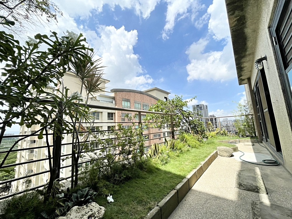 且是前陽台/高樓層的大露臺戶~不是後陽台那種放掃地用具,自種樹景植栽美美看的到呢!