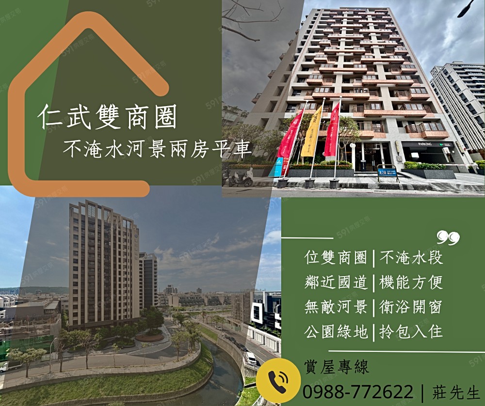 🏡 仁武✔️光之匯✔️雙商圈不淹水✔️雙陽台美裝潢河景兩房平車 🏡