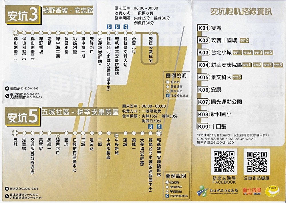 (K01)雙城站(K02)玫瑰中國城站(K03)台北小城站(K04)耕莘安康院區站(K05)景文科大站(K06)安康站(高架)(K07)陽光運動公園站(高架) (K08)新和國小站(高架) (K09)十四張站(高架)
