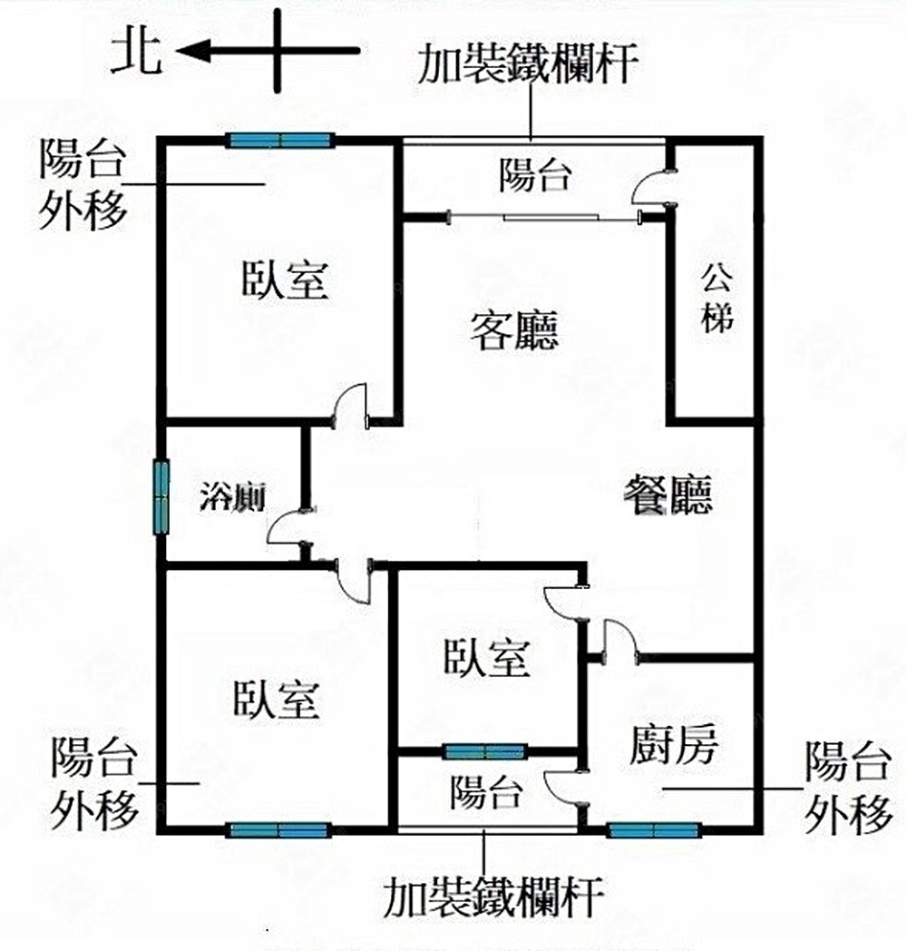 邊間三面採光方正三房.