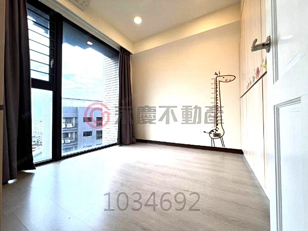 臥室房門挑高,房間木地板鋪設沒有高低差,大、小朋友都不怕磕磕碰碰,