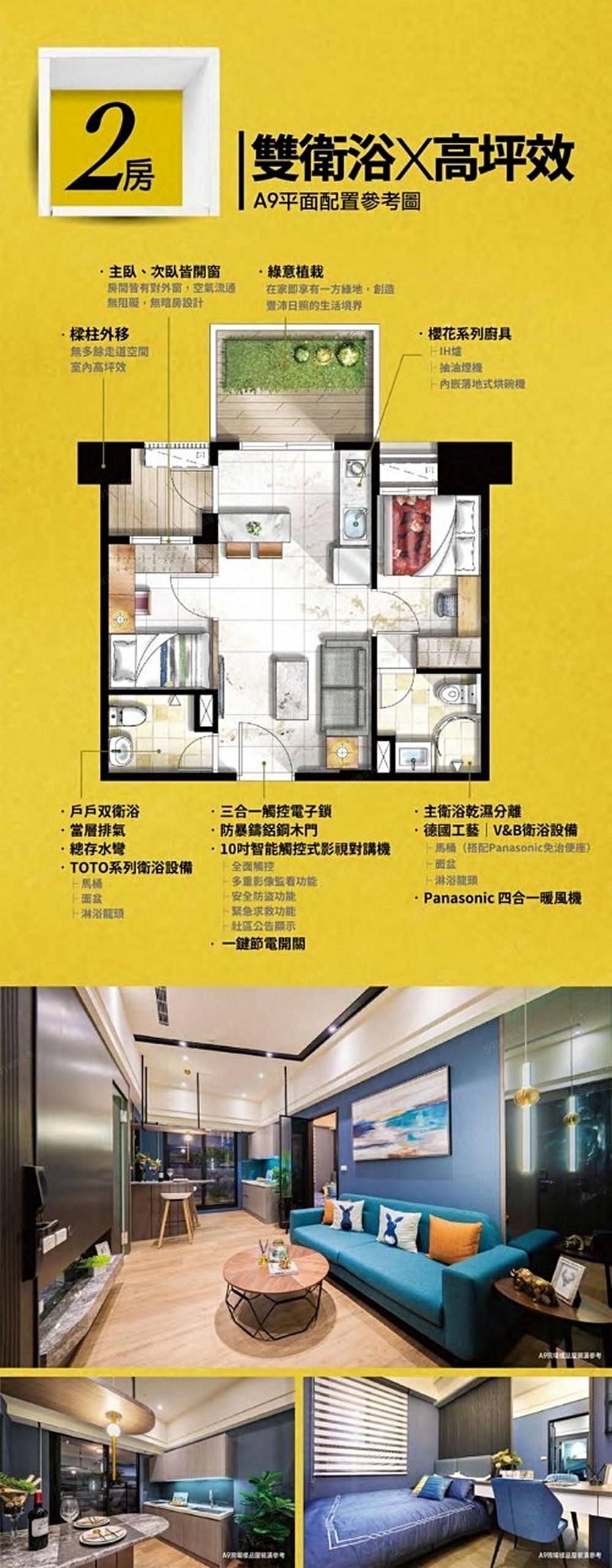 小坪數有2衛的稀有物件,完整公設(空中游泳池、健身房、KTV)