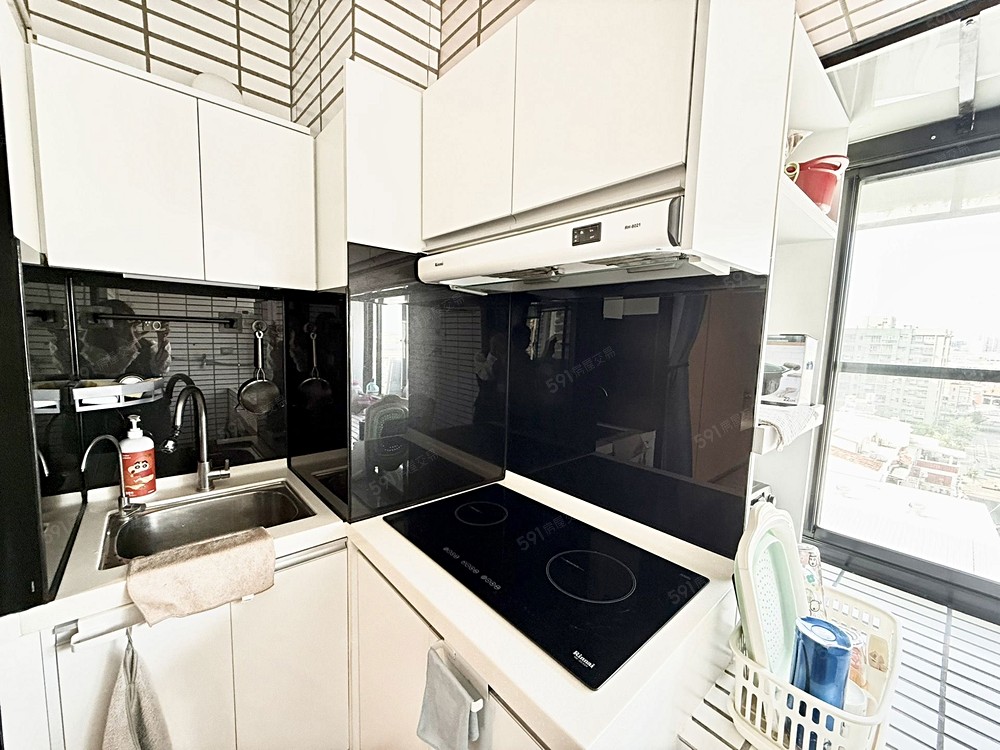 挑高天花與俐落線條,光影流動於每個角落,展現空間層次與設計感。屋主斥資近百萬裝潢,部份水電管線更新,簡約酒吧搭配細緻木作收納,衛浴乾濕分離,廚房配Rinnai頂級IH爐與櫻花儲熱式電熱水器,家電家具皆為頂規,用料實在、做工細膩,細節彰顯高級質感。