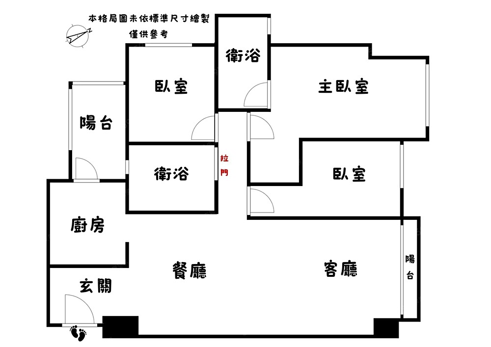 格局方正大三房,每間可放雙人床