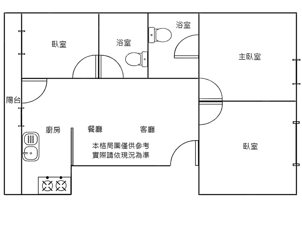 格局方正,室內正規三房,採光明亮舒適