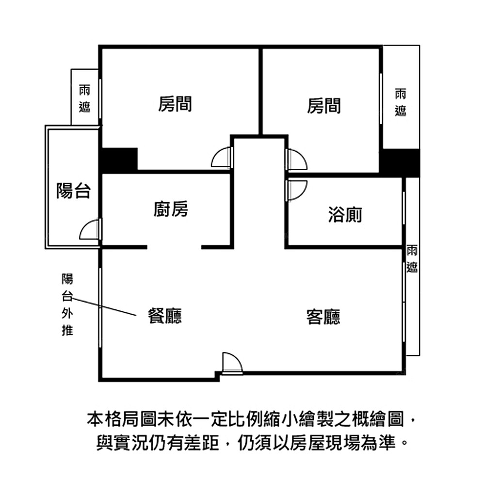 3. 本頁面若有刊登格局圖,係未依一定比例縮小繪製之概繪圖,與實況仍有差距,實際格局比例仍須以房屋現場為準。