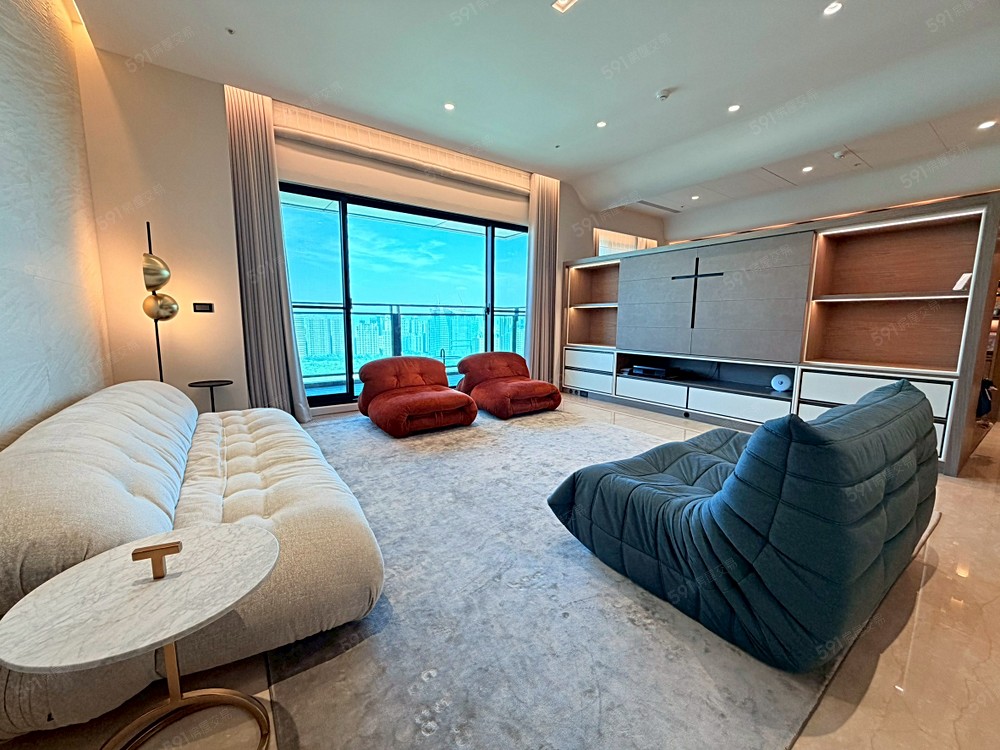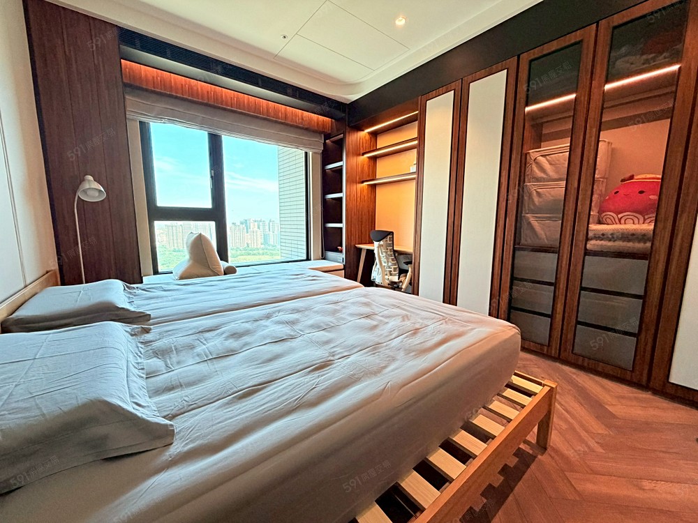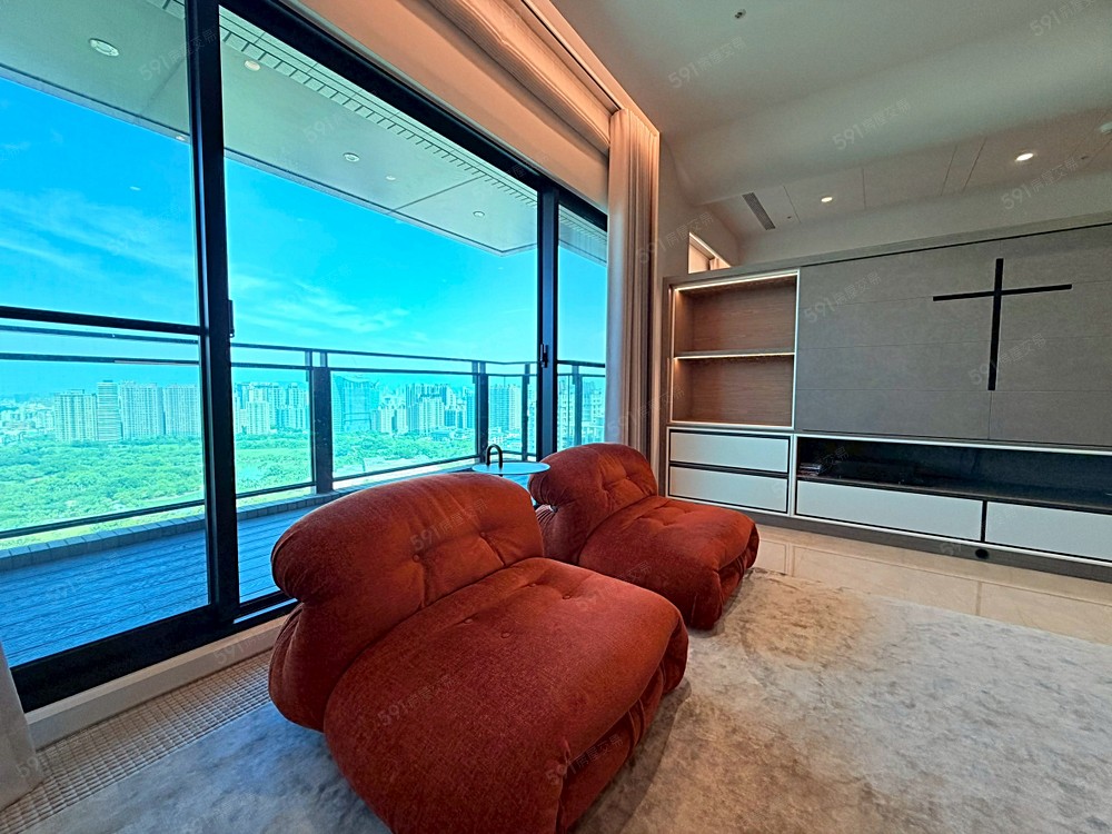 2.社區緊鄰綠園道,客廳採用大面落地窗+透空玻璃圍欄設計,可從室內輕鬆賞景。
