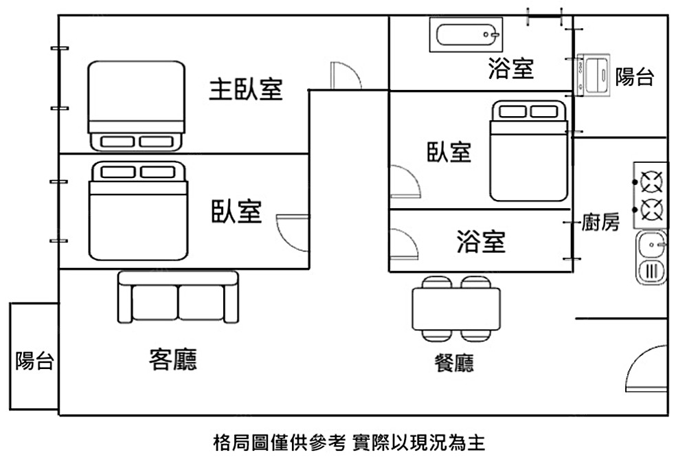 室內約26坪,三房兩廳雙陽台,格局方正好規劃