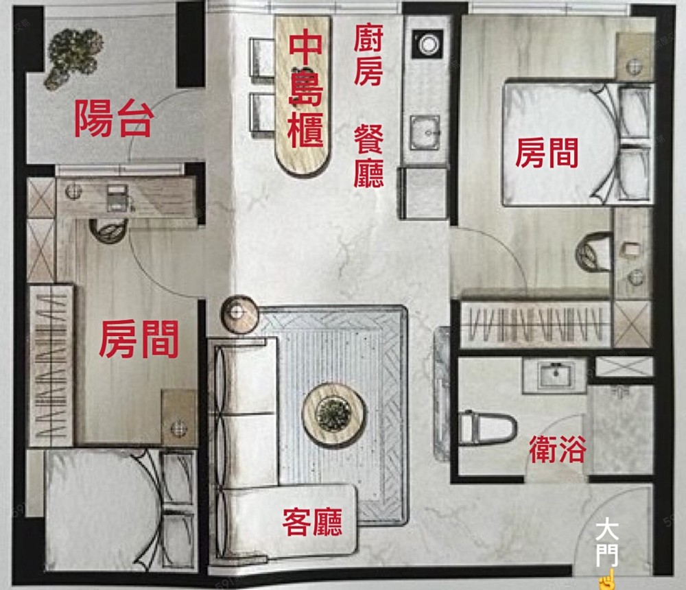 📌2房2廳1衛 1陽台
