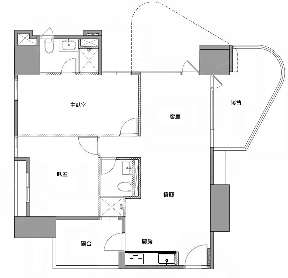 ✅ 戶戶邊間,陽光與風的流動 單層四戶的單純規劃,造就了戶戶邊間、三面採光的優越條件。衛浴全開窗,讓室內隨時保持清爽通風。