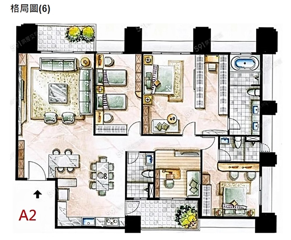 3、悅龍灣大戶型格局,室內53坪(含附屬),三面採光棟距佳、南北座向(冬暖夏涼),戶戶開窗,採光明亮,房間無暗房。