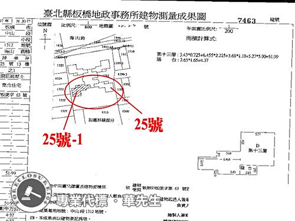 2‧113年8月6日債權人代理人導往現場,13樓(7462建號)及13樓之1(7463建號)均有增建,後方露台屬於增建,13樓占用人曾0俊稱原有租賃契約但目前13樓為自己使用並於訊問庭時表示願意就13樓拍賣條件訂為點交。另一在場人曾0杰稱13樓之1為其使用,曾0杰稱13樓之1露台有漏水情形,經本院通知後並未提出租約,占用權原不明,曾0杰於114年11月6日具狀向本院表示對7463建號無權占有不爭執,拍定後願協調搬遷,故定為點交。惟現實狀況如何,請應買人自行查明注意。