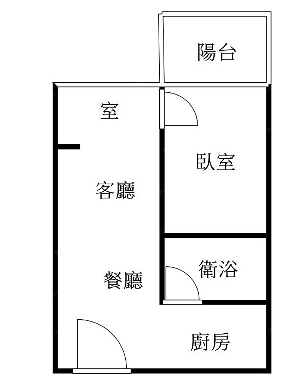 1 房 / 2 廳 / 1 衛 / 1 陽台