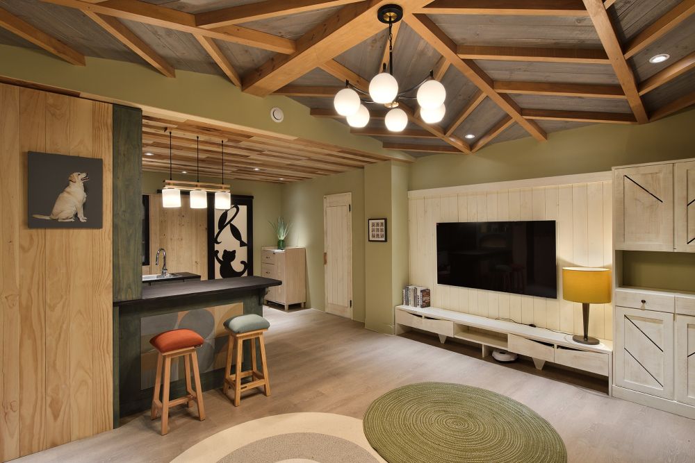 2. 復古窗花玻璃映照大面陽光灑落;屋內軟件彰顯主人懷舊風情