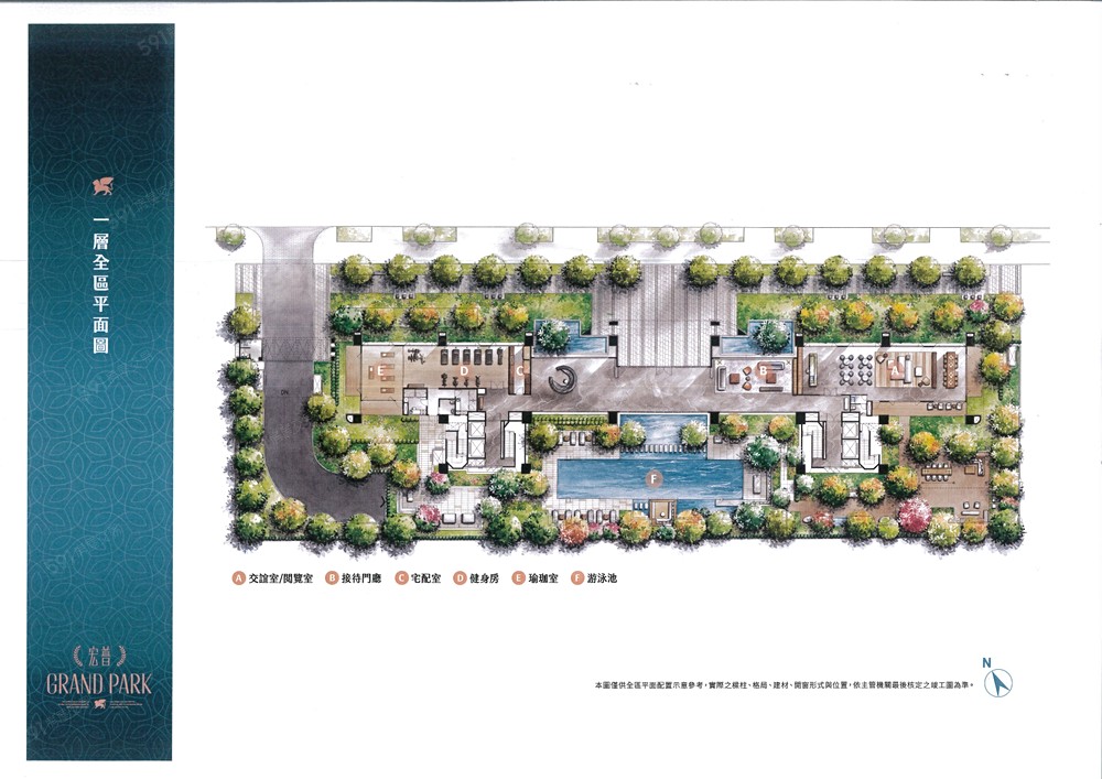 👍 門廳後方有露天的25米泳池,公設集中規劃在一樓空間,有健身房、戶外泳池、瑜伽室、閱覽室。